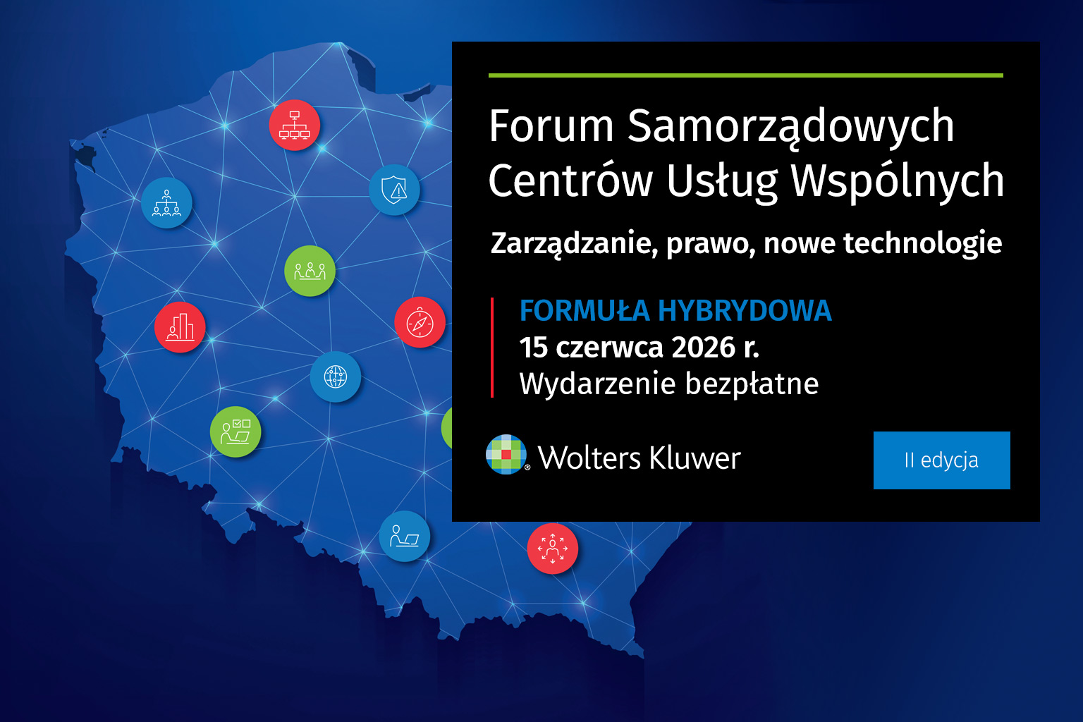 15 czerwca 2026 roku w Warszawie odbędzie się Forum Samorządowych Centrów Usług Wspólnych – jedyna na rynku konferencja dedykowana Samorządowym Centrom Usług Wspólnych. Udział w wydarzeniu jest bezpłatny. Konferencja ma formułę hybrydową – uczestniczyć w niej można zarówno stacjonarnie w Warszawie, jak i online.